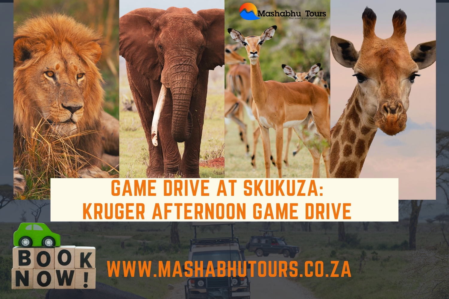 Experience the wild free roaming animals in the bush and waterholes as they wander in grassland and enjoy the breathtaking geographical landscapes of Kruger national park, opportunity to spot lions busking in the sun and elephants soaking their skin in water